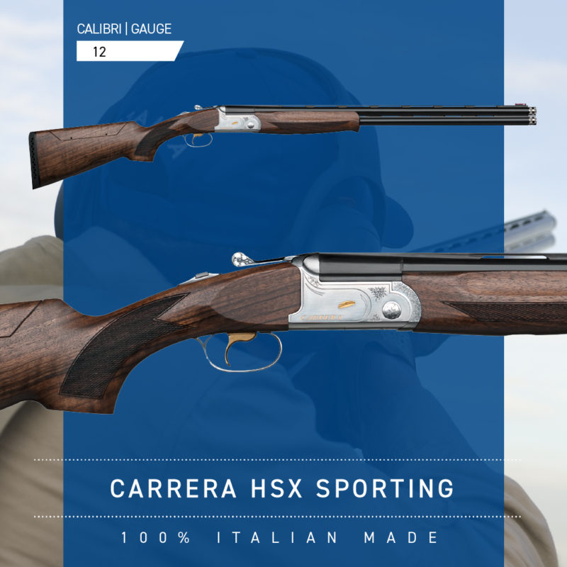 The pistol grip stock ends in a soft rubber recoil pad with double ventilation holes. Very useful is the adjustable comb that allows to find the right height and to modify the aiming set-up during hunting and on the range. The fore-end, featuring the classic Schnabel design of hunting guns, has a deep groove that allows a secure grip and a precise swing, which are fundamental in shooting sports. The barrels are chrome lined to ensure greater accuracy and durability over time and have a flat and ventilated upper rib with a central guide towards the high visibility fiber optic sight, available in different colors. The central rib is ventilated. Ejection is automatic and selective. Sober on the whole, but slim and pleasant in its lines, the Carrera Sporting HSX over-and-under stands out as a functional and reliable shotgun to have fun with – without compromises.