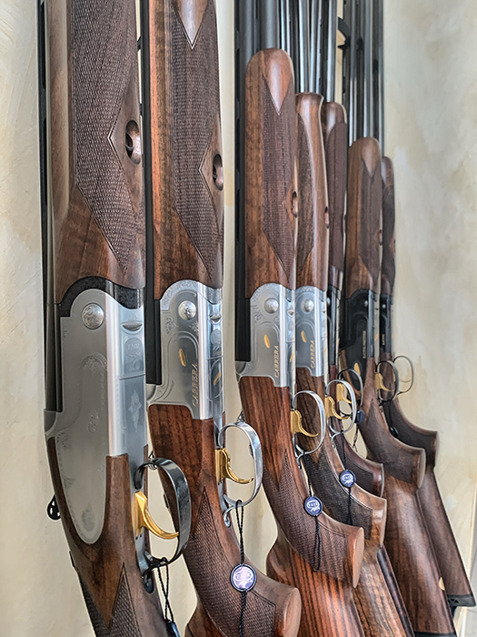 The Carrera’s receiver is machined from solid steel stock using precision numerical control machinery. It is recognizable by a laser engraving that in this model depicts a golden clay pigeon in flight. The selective single trigger is adjustable. This last and not negligible feature meets the needs of hunters in different seasons, because by adjusting the trigger and the LOP in a different way, the distance between the grip and the trigger changes, allowing those millimetric tolerances necessary to have full control of gun and trigger even when wearing different layers of clothing and therefore different thicknesses on the shoulder.