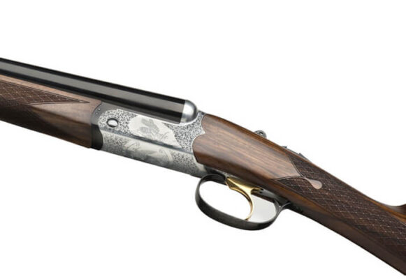 The “Iside” family, in its smooth bore versions, includes the “ISIDE” with manual extractor; “ISIDE EM”, with “triple depth” laser engraved action and automatic ejector through large ejectors; “ISIDE TARTARUGA GOLD” with colour hardened action, gold subjects and wood recoil-pad and “ISIDE GARDENA” that has a double trigger / single trigger shooting system, ejector, divergent barrels, in order to have a large bullet group (oo) in shooting both shots with the rear double trigger actioned first. There is a wide selection of calibres: 12-16-20-28-410.