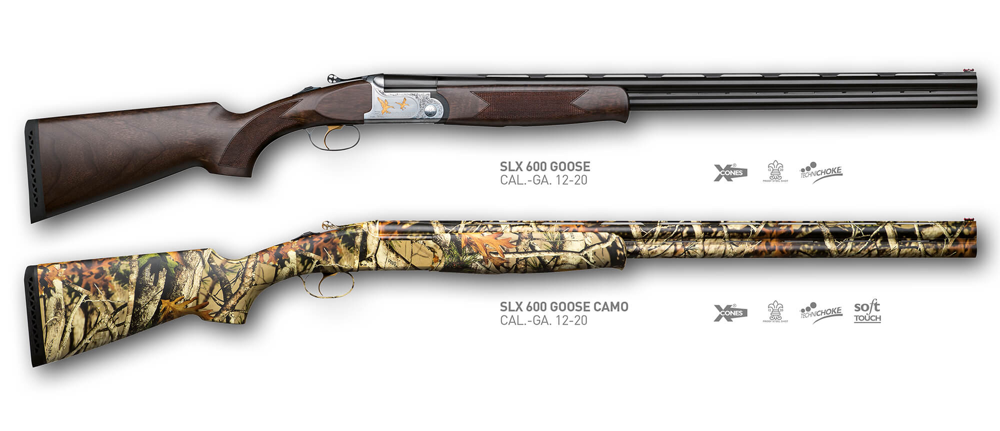 Ces modèles « SPÉCIAUX POUR LES AQUATIQUES » sont parfaitement adaptés pour la destination de chasse pour laquelle ils ont été conçus. Faisant partie de la famille SLX 600, ils partagent avec celle-ci le projet de production, se distinguant en 2 modèles SLX 600 GOOSE et SLX 600 GOOSE CAMO, tous deux produits en calibre 12/76 (3”) magnum et 20/76 (3”) magnum avec possibilité en option de la chambre SUPER MAGNUM en cal.12 : 12/89 (3 1⁄2”). Ils sont tous deux fournis avec une bande supérieure de 11 mm (STRADA), une bande latérale ventilée, un viseur en fibre optique et une culasse en caoutchouc. Le modèle SLX 600 GOOSE CAMO est entièrement recouvert de camouflage pour une meilleure dissimulation et des bois en Soft-Touch.